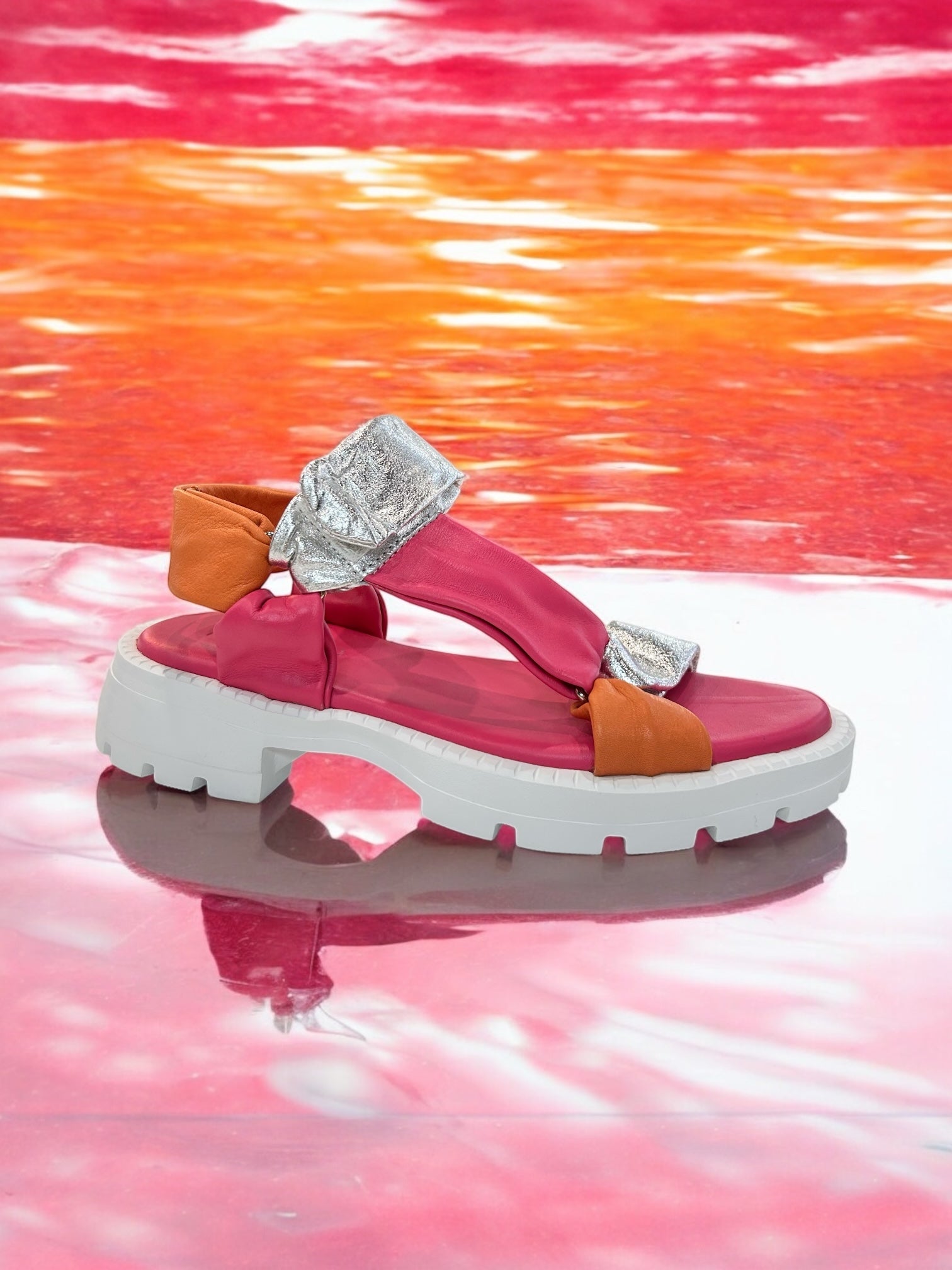 These vibrant, multi-colored sandal features wide bands of soft, tubed leather that wrap supportively around your foot. The soft rubber sole ensures exceptional comfort, making them an ideal summer choice. Additionally, the Velcro strap adds extra convenience for a secure fit.