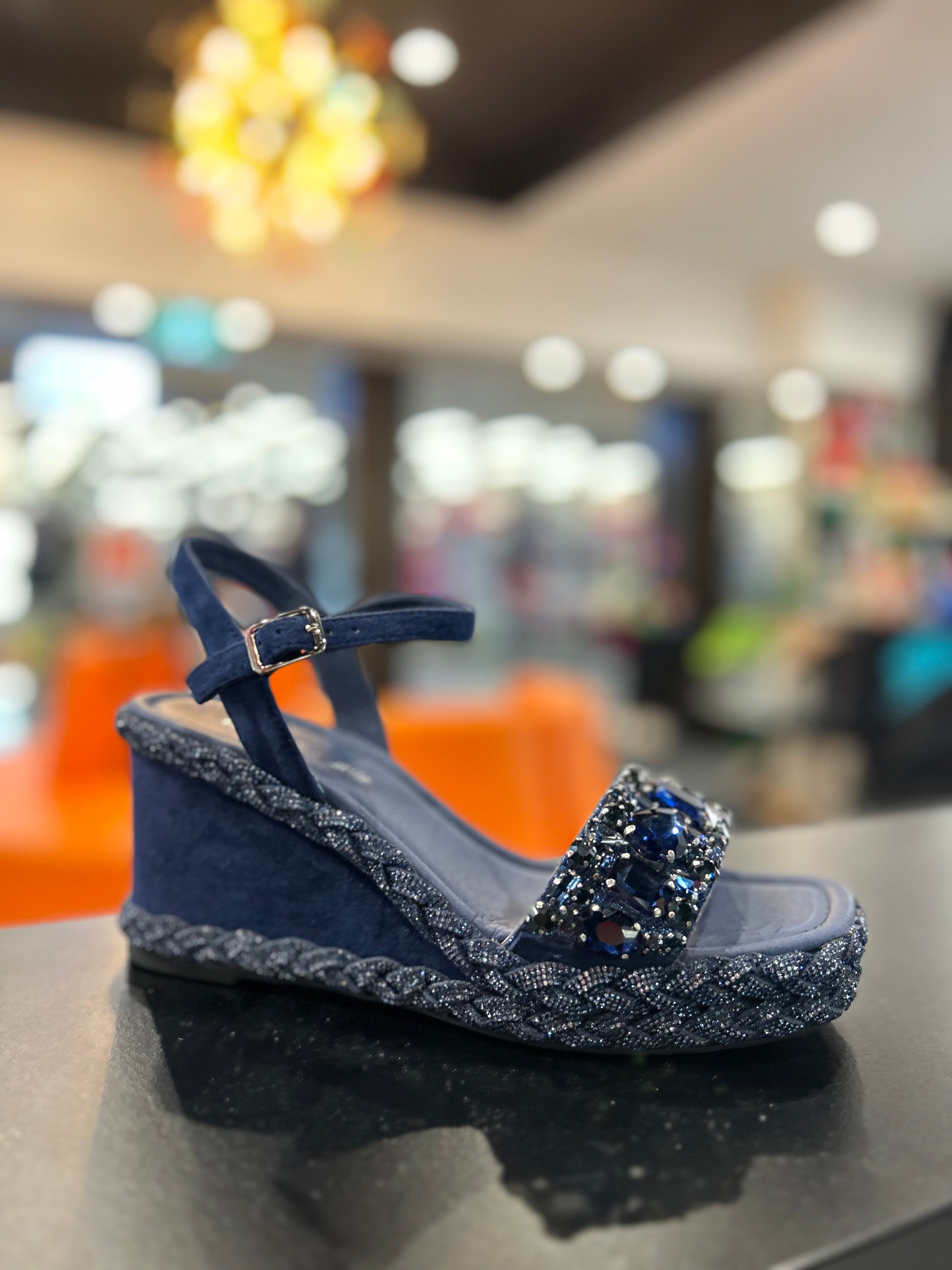 The real showstopper? A jeweled forefoot strap that shimmers with every step, teamed with braided diamante rope detailing that wraps the wedge in pure wow factor. Add in an adjustable ankle strap for a secure fit, and you’ve got the perfect blend of sass and sophistication.