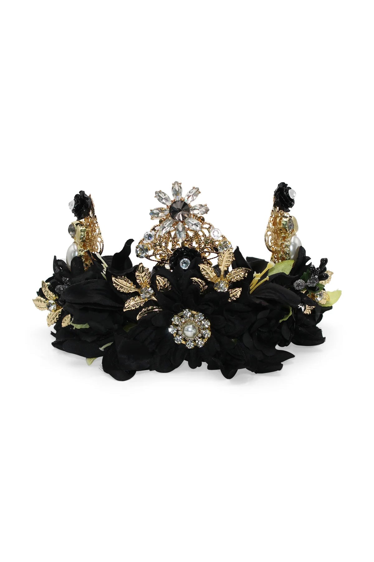 The Morgan & Taylor Violet Headpiece in Black is a luxe floral crown, adding elegant playfulness to any look. Perfect for a statement look, the headband can be worn in two ways. Style like a crown, with the metal detailing facing up, or wear as a flower crown, with the floral detailing facing up.