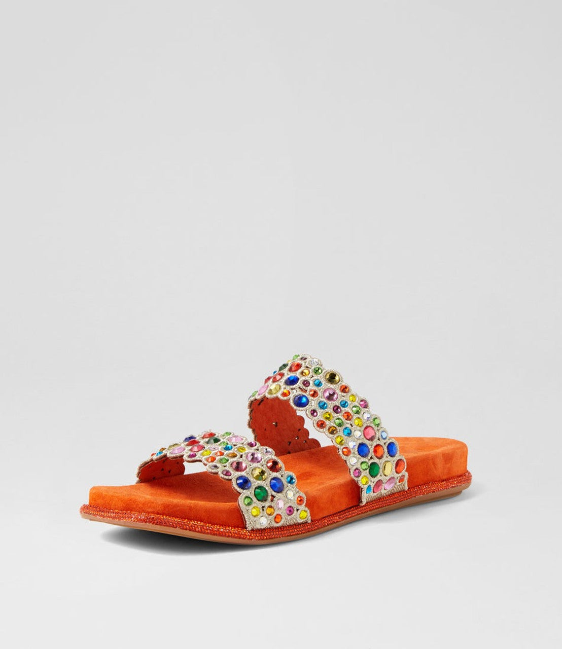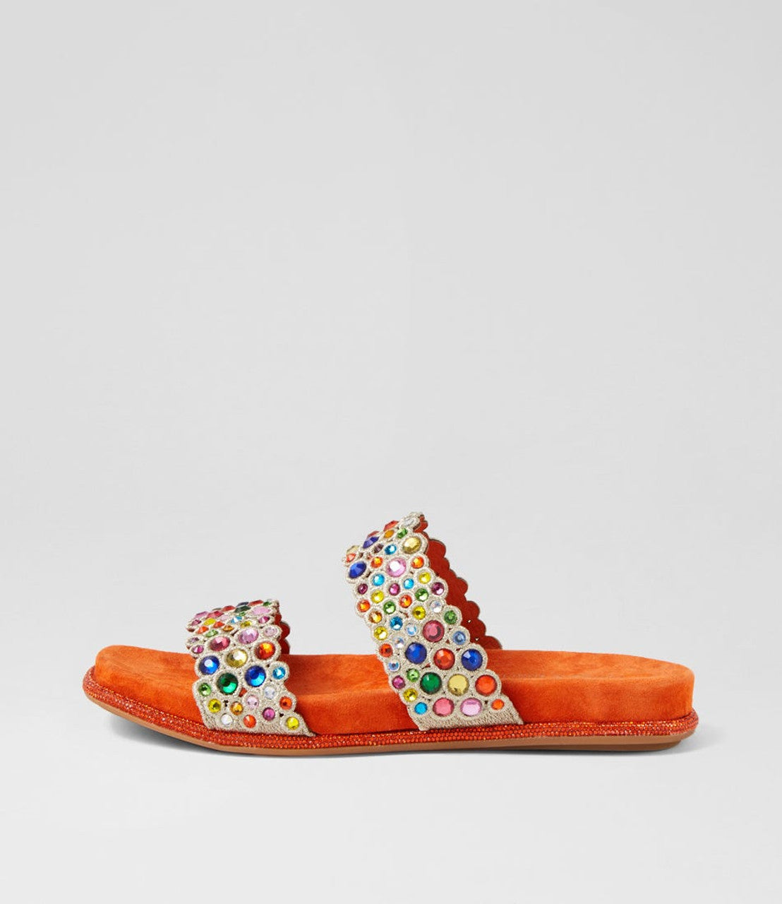 The prettiest little slide in town! Just look at the beautiful embellishments. Not only will you look the part, but your feet will be supported by the soft countoured footbed.