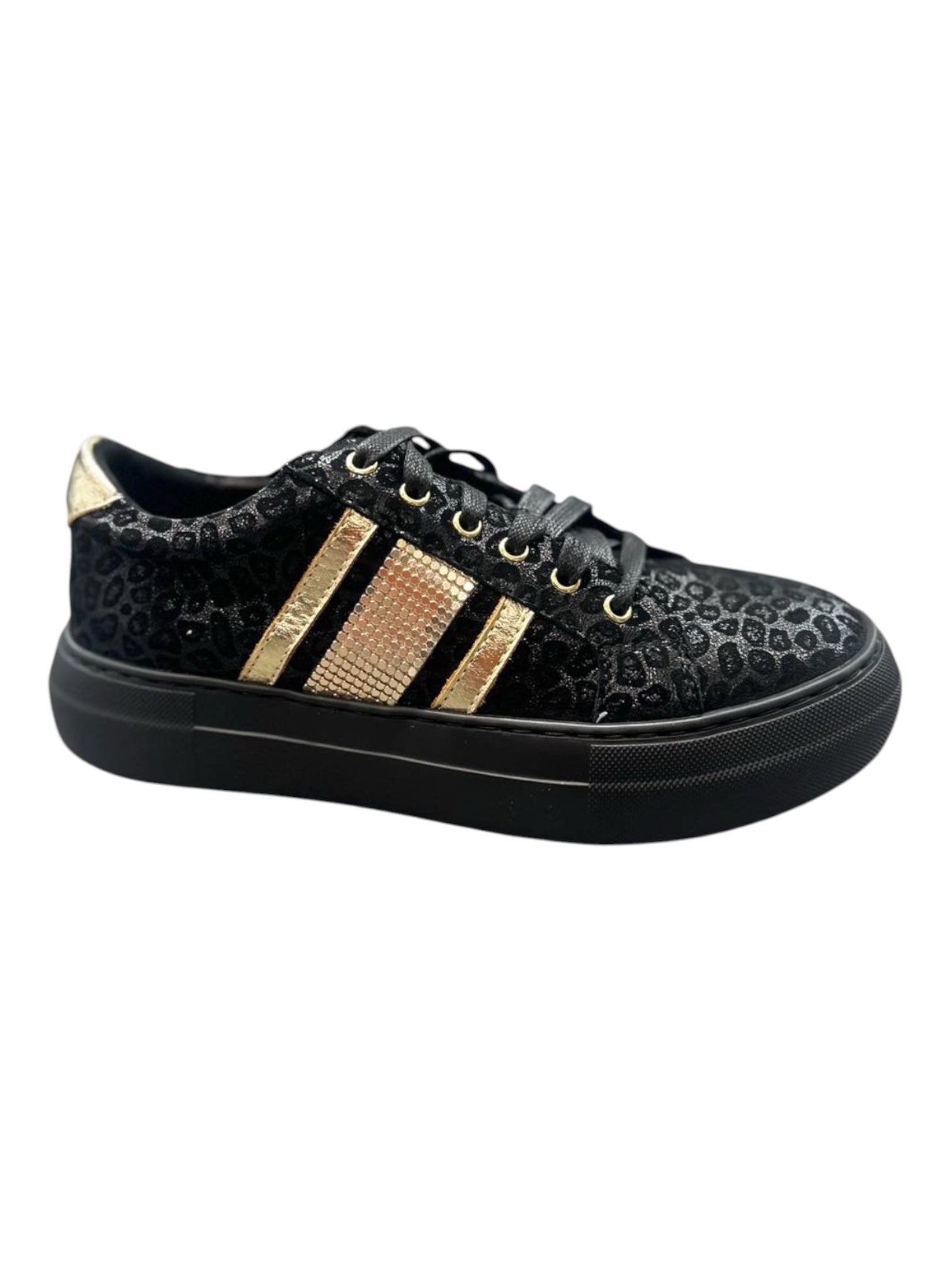 Gelato's black and gold Zee sneaker blends style with comfort. Featuring metallic details with a hint of leopard print, Zee remains classy and fashionable, whilst inconspicuously featuring a sole with excellent arch support. Being light-weight, soft and comfortable, Zee is the embodyment of a walking shoe that turns heads!